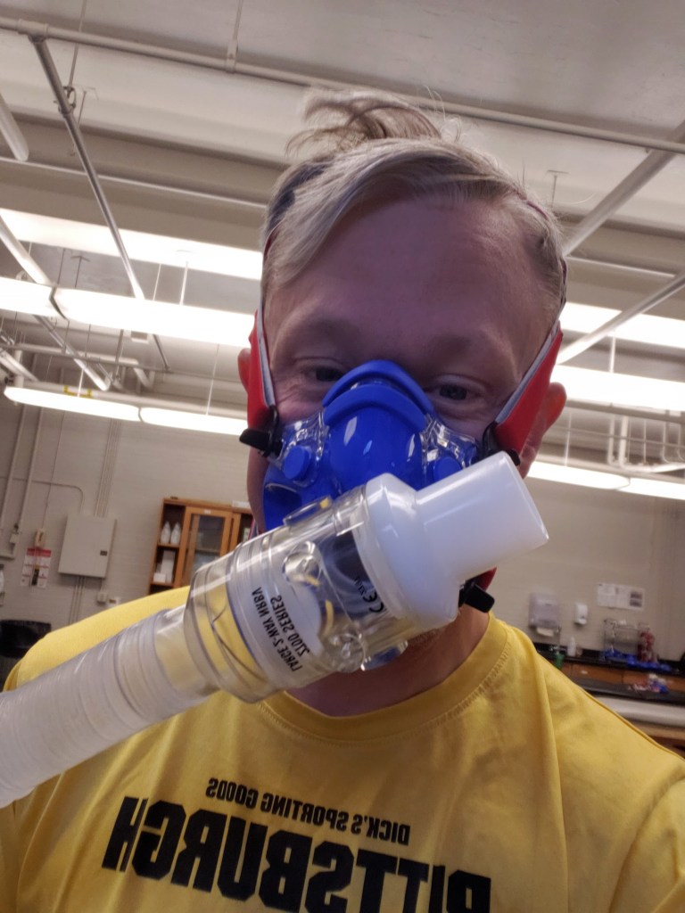 In this selfie, I’m on a treadmill in a Grove City College lab for my final round of testing as part of a three-month study. After a month on a high-carb diet, a month off, then this final month of the super-low-carbohydrate keto diet, the mask and attached tube would help measure how much air I was pulling in, how much oxygen I was processing, and how efficiently. The blood samples between each round were to look at things like blood lactate, a byproduct of anaerobic exercise, or what happens when your body can’t keep up with the oxygen demands of what you’re putting it through, like mostly sprinting half a mile; and ketones, or what’s created when your body burns fat for energy while in ketosis.