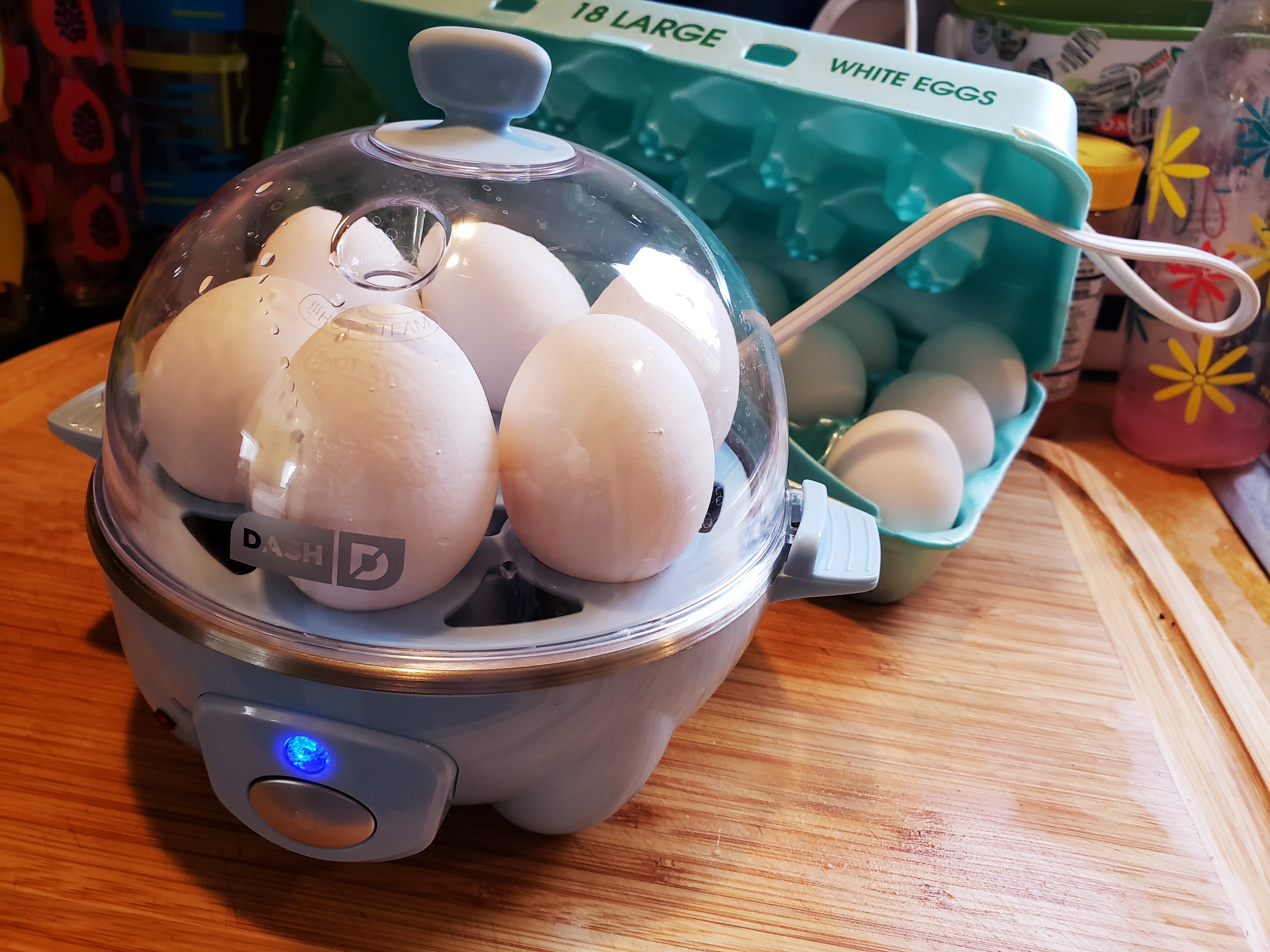 You throw in six eggs, a little bit of water, put the lid on, you walk away, and in just a few minutes it plays a little song to let you know you have perfectly cooked eggs for a salad, for a sandwich, even to eat whole, like some kind of large, pale, protein berry.